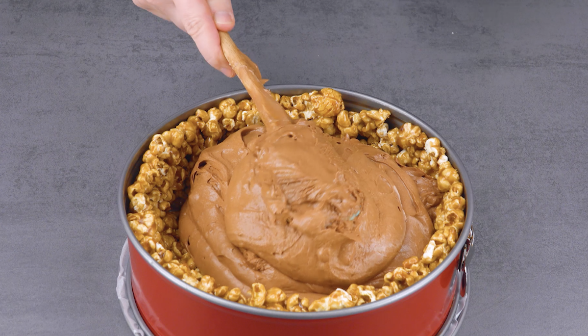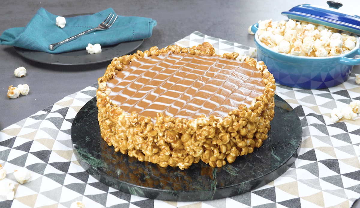 Wenn du zu denjenigen gehörst, für die jeder Kinobesuch einen XXL-Becher Popcorn impliziert, dann solltest du folgendes Rezept mit Aufmerksamkeit lesen. Dieser Kuchen ist ein süßer Genuss aus Popcorn mit Karamell und einer äußerst schmackhaften Schokomousse. Verziert wird er noch mit Zuckerguss – und fertig ist ein tolles Dessert mit selbstgemachtem Popcorn.