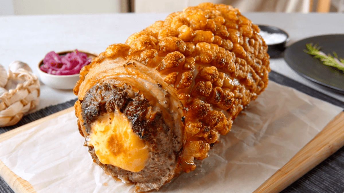 Dieser unglaublich leckere Schweinerollbraten überzeugt vor allem durch die extraknusprige Schwarte. In Verbindung mit dem saftigen Kern aus Hackfleisch und Gnocchimasse ist dieses Porchetta-Rezept ein absolutes Highlight.