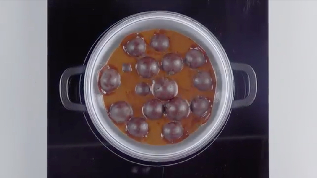 1.) Erwärme die Pralinen in einem Wasserbad, bis sie schmelzen, und verrühre sie mit der Kondensmilch zu einer schaumigen Creme.