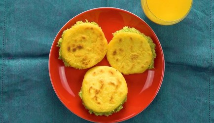 Löse das Salz in Wasser auf und rühre nach und nach das Maismehl ein. Wenn ein Teig entstanden ist, forme ihn in gleich große Kugeln und drücke sie mit der Hand platt. Erhitze Öl in einer Pfanne auf hoher Stufe und brate die Arepas 4 bis 5 Minuten von jeder Seite an. Tupfe sie danach trocken.