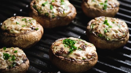 Grille die gefüllten Champignons für 20–30 Minuten, bis sie weich und der Käse schön geschmolzen ist.