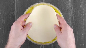 Schließlich legst du eine passgenau zugeschnittene Scheibe Blätterteig darauf und bestreichst sie mit Ei. Bei 190 °C Umluft wird das Ganze für 90 Minuten gebacken.