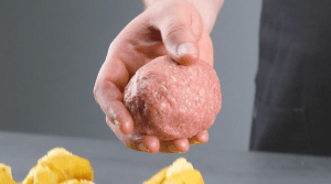 Umschließe nun jede Kartoffel mit einem Teil der Hackmasse und drücke diese gut an.
