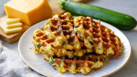 Serviere die Waffeln warm, zum Beispiel mit einem Dip.