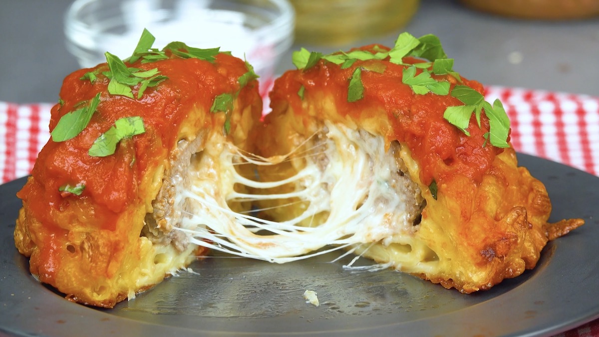 6.) Hackbällchen und Spaghetti am Stiel Eine klassische Kombination, die eigentlich nie enttäuscht, sind Spaghetti mit Hackfleisch. Aber auf die folgende Art und Weise hast du sie bestimmt noch nie gegessen. Dieses Rezept zeigt dir, wie genial man Hackbällchen mit Käse und Spaghetti, frittiert in Tempura-Teig, zubereiten kann. Ein köstlicher „Fingersnack“, der blendend auf ein Partybuffet oder zu einem TV-Abend mit Freunden passt.