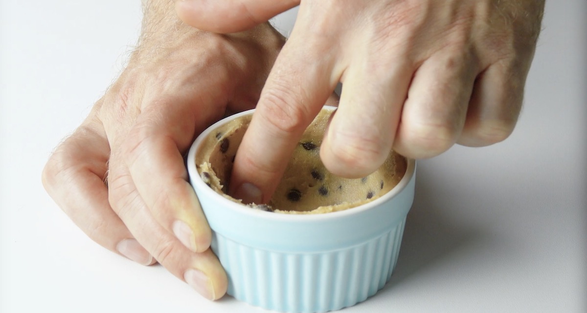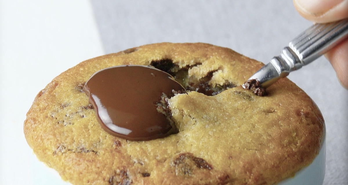 3.4) Backe die Mini-Küchlein für 10 Minuten bei 180 °C Ober-/Unterhitze. Wenn du den Cookie-Kuchen danach mit einem Löffel isst, wird dich der flüssige Schokoladenkern in Verzücken geraten lassen.