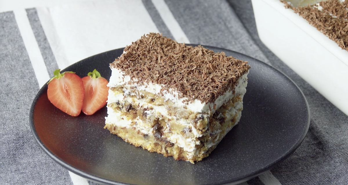2.3) Bedecke auch diese Schicht wieder mit Sahne. Lege nun zum Abschluss wieder zwei Cookies obendrauf, übergieße sie mit Kaffee und bedecke sie mit Sahne. Streue zum Abschluss geriebene Schokolade obendrauf und stelle das Tiramisu für mindestens vier Stunden in den Kühlschrank, bevor du dir das leckere Dessert auf der Zunge zergehen lässt.