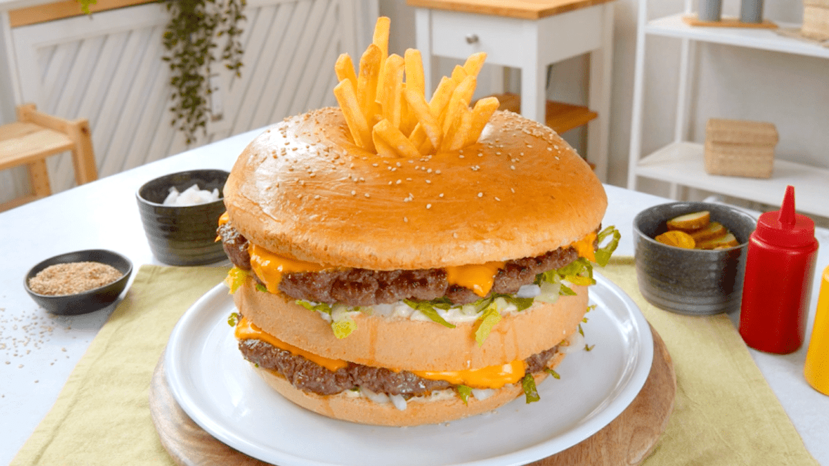 Für dich ist ein Cheeseburger eher ein Appetizer als ein Hauptgericht? Dann gehört du wohl auch eher zur Big Mac-Fraktion! Die doppelstöckige Variante des Fast Food-Klassikers vom goldenen M ist seit über 50 Jahren weltweit ein Dauerbrenner. Da wir in der Küche ja mal gerne etwas übertreiben, dachten wir uns, den Big Mac mal in richtig „big“ zuzubereiten. Vorhang auf für den größten Big Mac aller Zeiten!