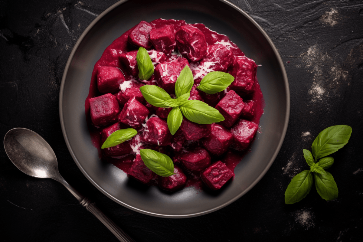 Deine Reise zu köstlichen Rote-Bete-Gnocchi beginnt mit der sorgfältigen Vorbereitung des Teiges, dem Herzstück dieses Gerichts. Nimm dir Zeit, um die gekochte Rote Bete und die Kartoffeln zu einem feinen Püree zu verarbeiten. Hier kommt es auf die Konsistenz an: Je feiner dein Püree, desto zarter werden später die Gnocchi sein. Du kannst einen Pürierstab verwenden, um eine gleichmäßige, glatte Textur zu erzielen, aber ein guter alter Kartoffelstampfer tut es auch, solange du darauf achtest, alle Klumpen gründlich auszudrücken.