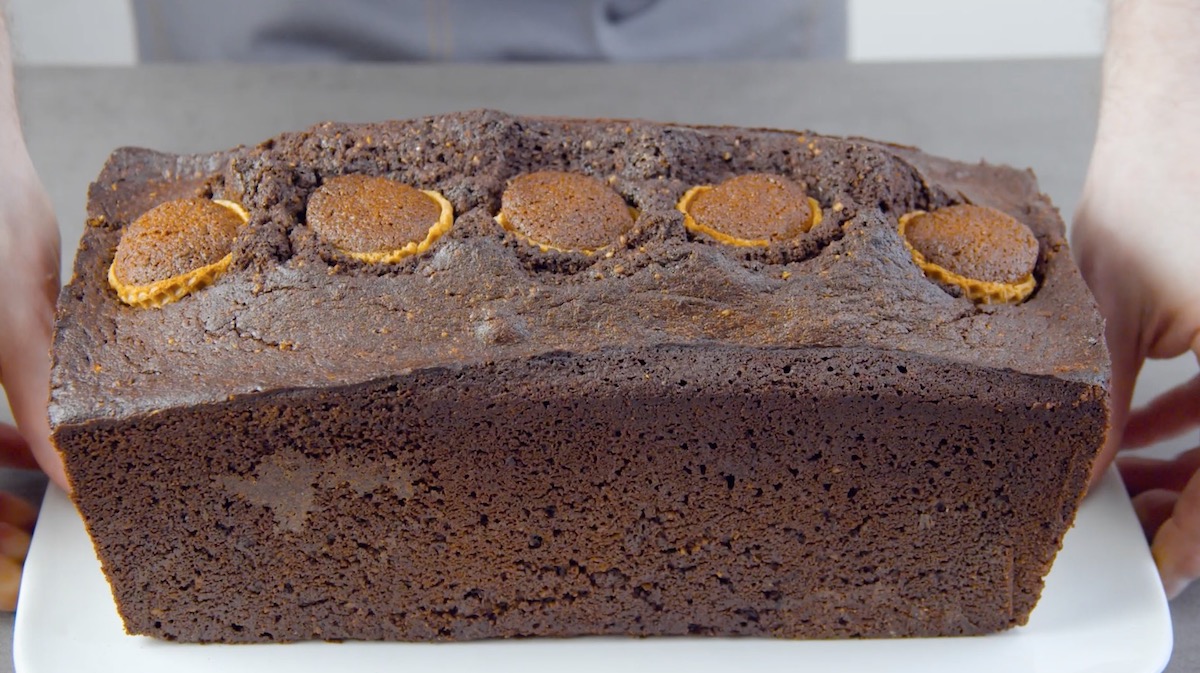 3. Backe den Rüblikuchen im Schokoladenkuchen für 2 Stunden bei 180 °C Ober-/Unterhitze. Lass den Kuchen anschließend auskühlen.