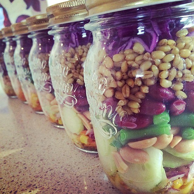 Mit dem Salat im Einmachglas garantierst du dir deine tägliche Dosis Vitamine und sparst außerdem jede Menge Zeit. Und auch wenn du 5 Gläser auf einmal vorbereitest, kannst du mit verschiedenen Dressings und Gemüsesorten für tägliche Abwechslung beim Mittagessen sorgen.