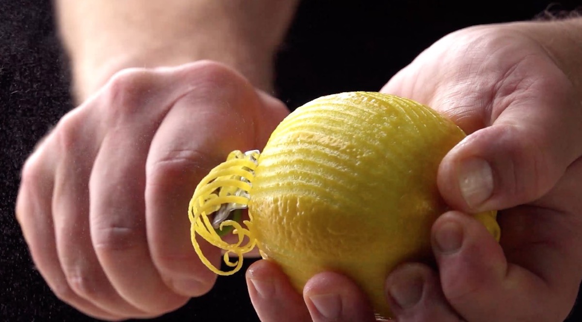 1.) Lege zuerst die gewaschenen und getrockneten Hähnchenschenkel in einen wiederverschließbaren Plastikbeutel. Schäle dann feine Streifen von der Zitronenschale ab. Am schnellsten und einfachsten geht das mit einem Zestenschäler. Die Streifen kommen dann zusätzlich in den Beutel.