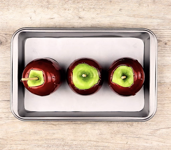 So ein kandierter Apfel ist wie eine kleine Zeitreise in die Kindheit. Und wenn du gleich drei davon zauberst, kannst du ja sogar noch zwei Freunde einladen. Übrigens: Auf dem bunten Teller macht sich der eine oder andere kandierte Apfel auch ganz hervorragend als Deko. Viel Spaß beim Zubereiten und Naschen!