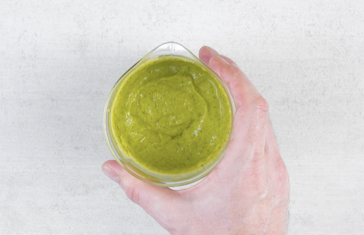 5. Vermische Sahne mit Zucker, Stärke und Eigelb in einem Topf. Bringe dann alles bei mittlerer Hitze auf dem Herd zum Kochen und rühre so lange, bis die Mischung eine cremige Konsistenz bekommt. Fülle die Creme in einen hohen Becher und lasse sie etwas abkühlen. Füge die Pistazien hinzu und mixe alles mit einem Pürierstab fein. Lasse die Creme im Kühlschrank vollständig abkühlen.