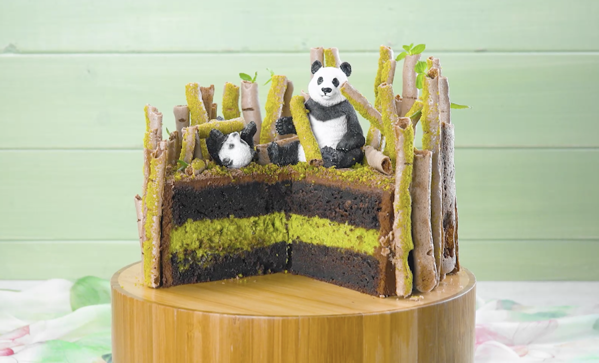Auch ohne Panda-Figur macht dieser Schokokuchen mit Pistaziencreme und Baiser natürlich ordentlich was her. Ein Kuchen, der noch lange in Erinnerung bleibt: sowohl optisch als auch geschmacklich.