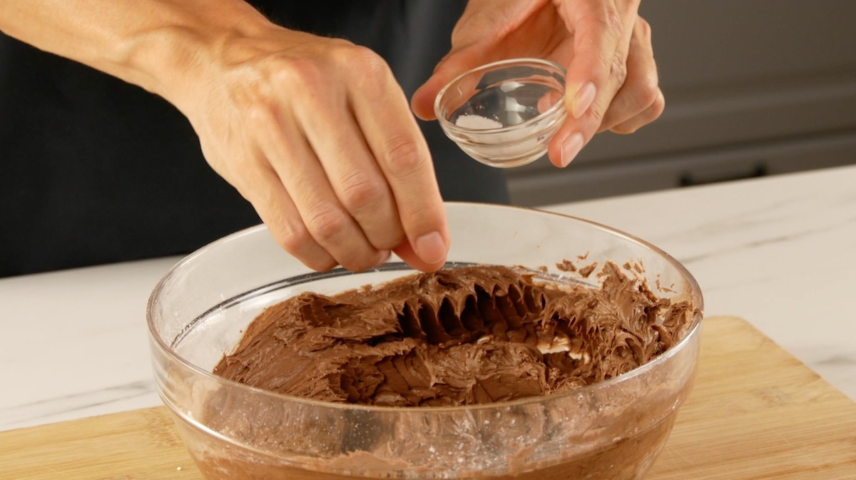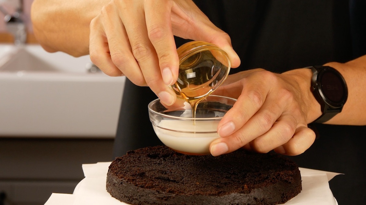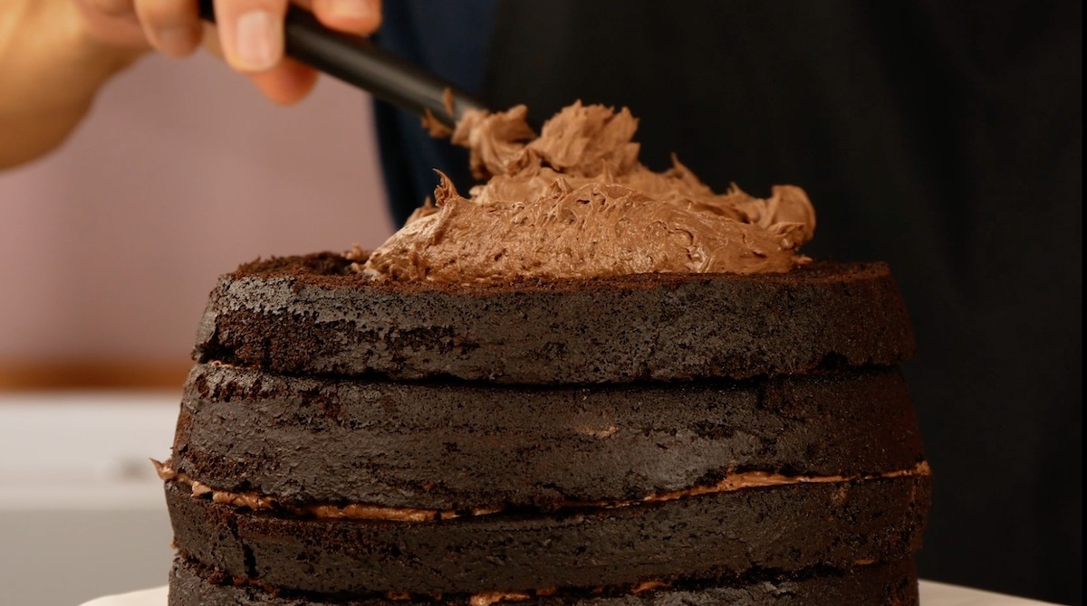 Der perfekte Schokokuchen braucht eine leckere Creme, die zwischen den Schichten verteilt wird.