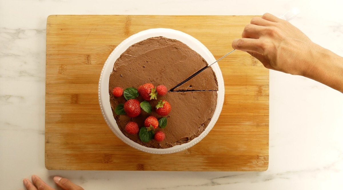 Achtung: Säubere das Messer nach jedem Schnitt. Nur so kann jedes Kuchenstück appetitlich und sauber abgetrennt werden.