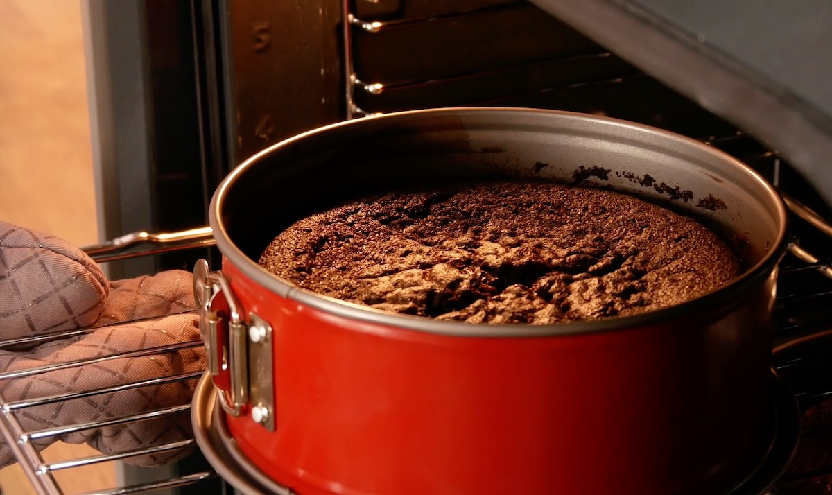 Achtung: Öffne die Ofentür nicht zu früh, denn dann kann der Kuchen einfach in sich zusammenfallen.
