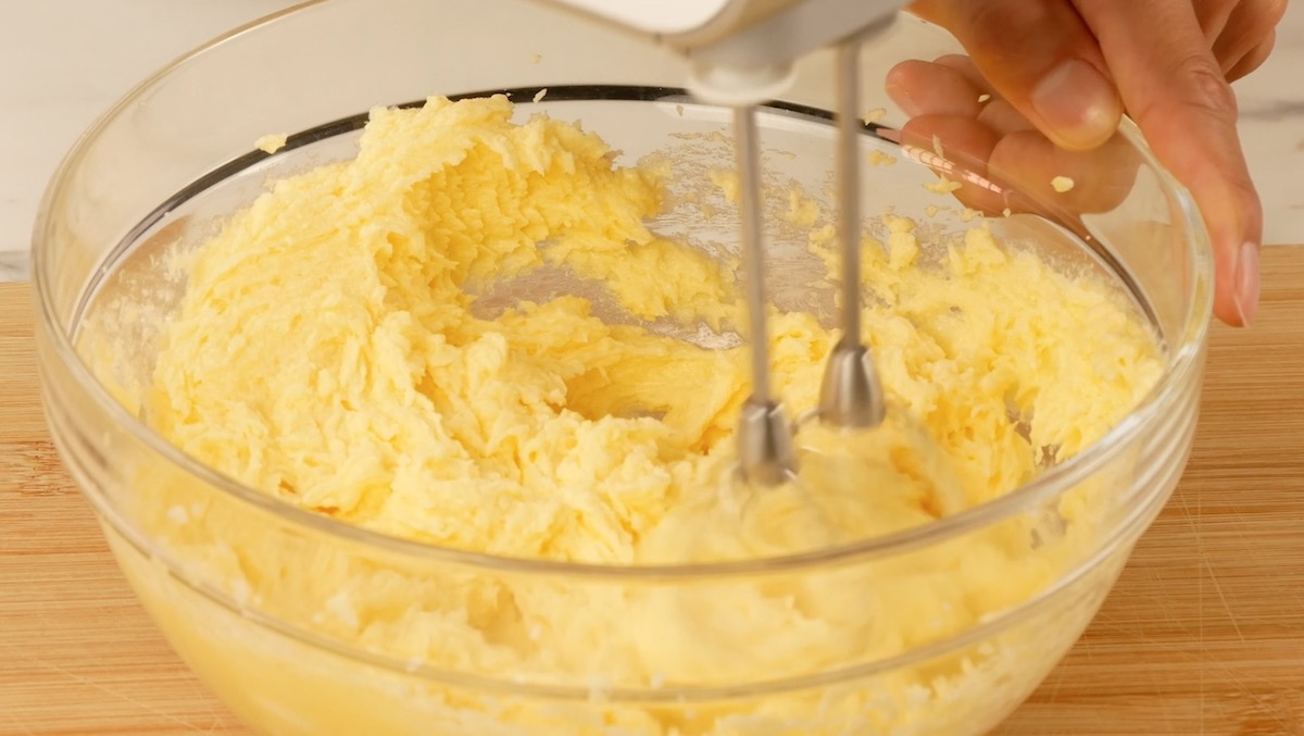 Das Geheimnis eines fluffigen Kuchens, der perfekt im Ofen aufgeht, liegt darin, wie lange du Butter und Zucker miteinander vermischst – mixe die beiden Zutaten für 10 Minuten, bis sie eine cremige Konsistenz angenommen haben. Das schnelle Rühren sorgt übrigens dafür, dass viel Luft untergemischt wird, das macht den Teig später noch fluffiger und leichter.