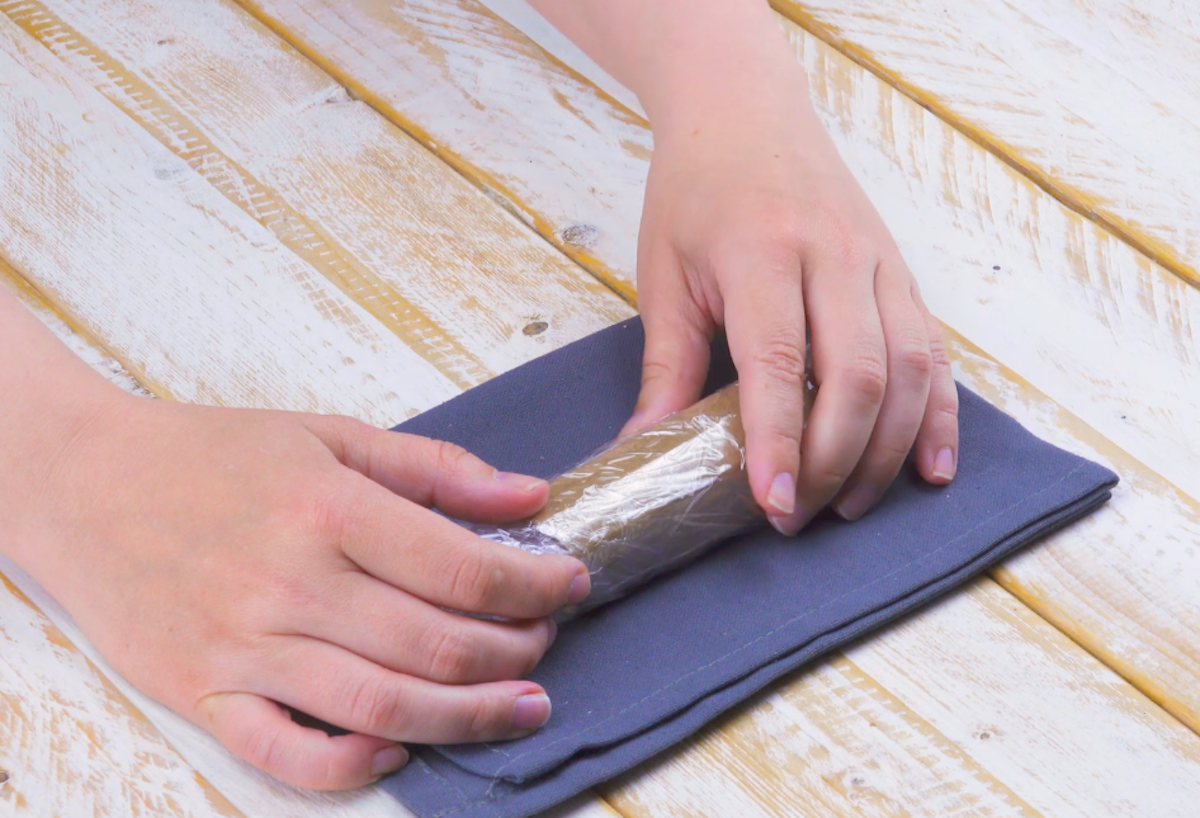 1.) Bastle als Erstes drei Hohlformen aus Pappe. Achte darauf, dass sie die Breite deiner Kastenform haben und an den Rändern gut anliegen. Dann umwickle sie mit Klarsichtfolie.
