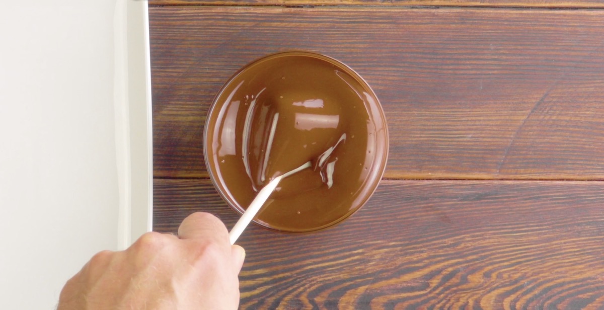 17.) Warte, bis die Schokolade wieder fest geworden ist, und löse dann den Eiswürfel aus dem süßen Quader.