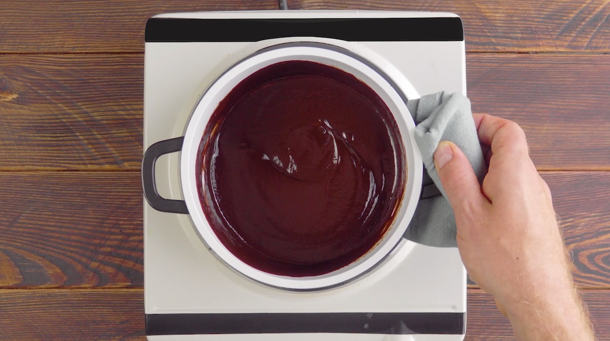 13.) Schmilz den Kaffeesahneeiswürfel nun in einem Topf und verrühre ihn mit dunkler Schokolade zu leckerer Schokokaffeecreme.