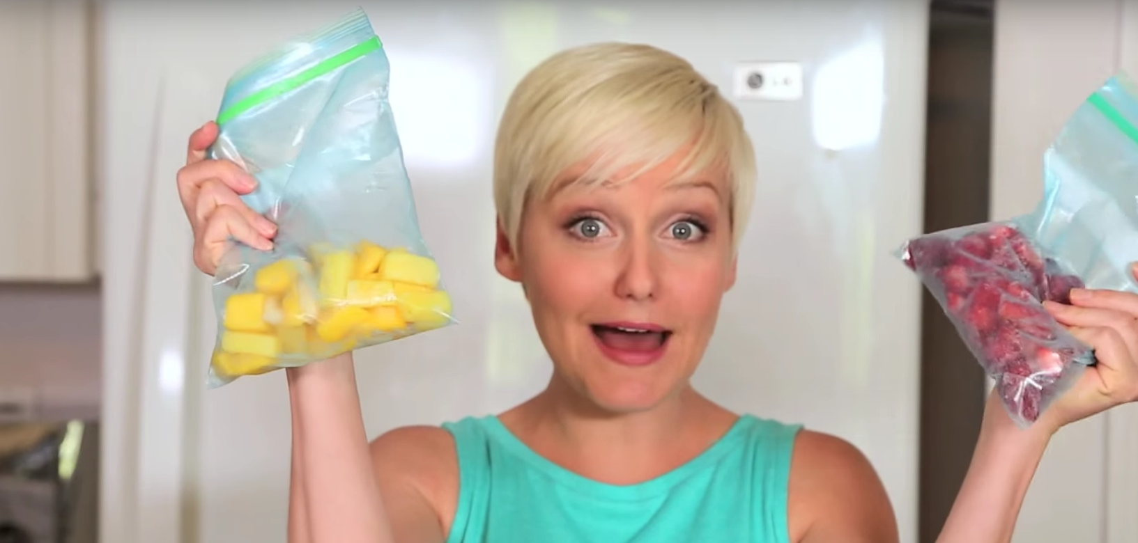 Im Anschluss daran verpackst du das Obst in kleine praktische Gefrierbeutel und lagerst sie im Eisfach. So musst du morgens nichts mehr klein schneiden, sondern kannst einfach den Gefrierbeutel aufreißen und direkt loslegen.