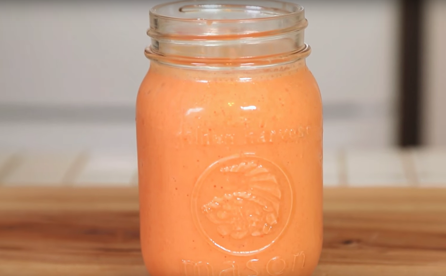 Ab in den Mixer mit den Zutaten und fertig ist dein orangener Smoothie.