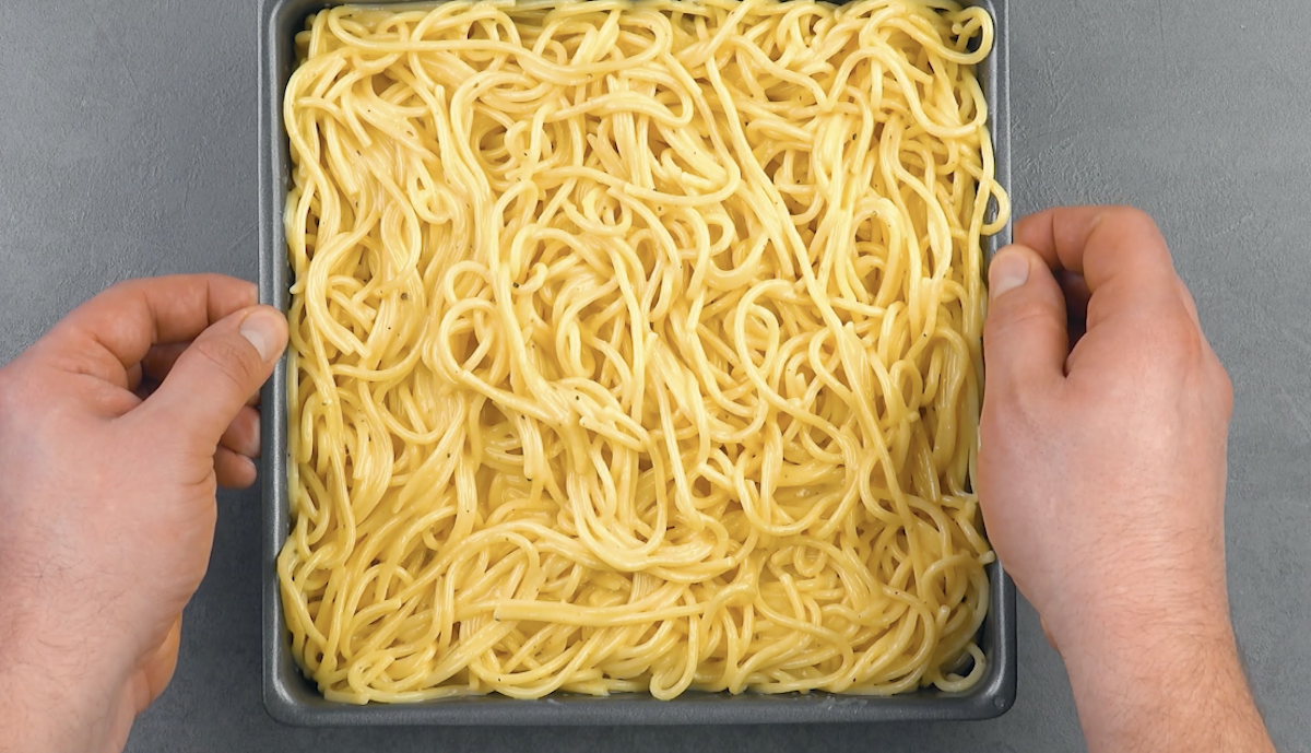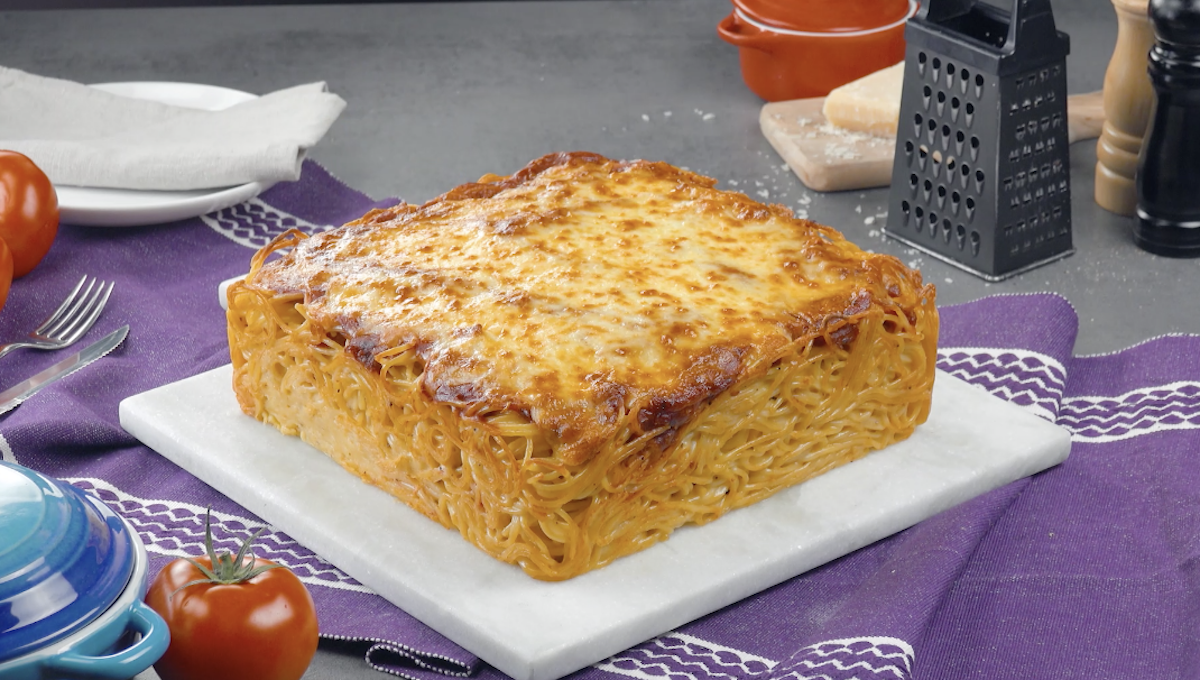 Anstatt der Hähnchenbrüste kannst du natürlich auch Schweinefleisch verwenden. Dieser Spaghettikuchen vereint zwei hierzulande äußerst beliebte Komponenten: Spaghetti und Schnitzel. Und dann noch der Käse dazu: ein Traum für den Gaumen! Hier findest du das Rezept für die Nudel-Hackfleisch-Rolle aus dem Bonusvideo.
