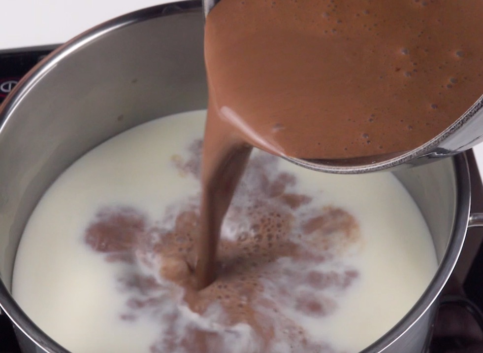 Backe beide Bleche nun im vorgeheizten Backofen für 30 Minuten bei 180 °C im Umluftmodus und lass sie danach auskühlen. 3.) Erhitze dann einen halben Liter Milch mit dem Zucker in einem großen Topf. Währenddessen verrührst du die zweite Portion Milch mit dem Schokoladenpuddingpulver und dem Stärkemehl. Gib die Mischung dann unter Rühren zur heißen Milch in den Topf und koche einen Pudding damit. Nimm ihn anschließend von der Kochstelle und lass ihn auskühlen.