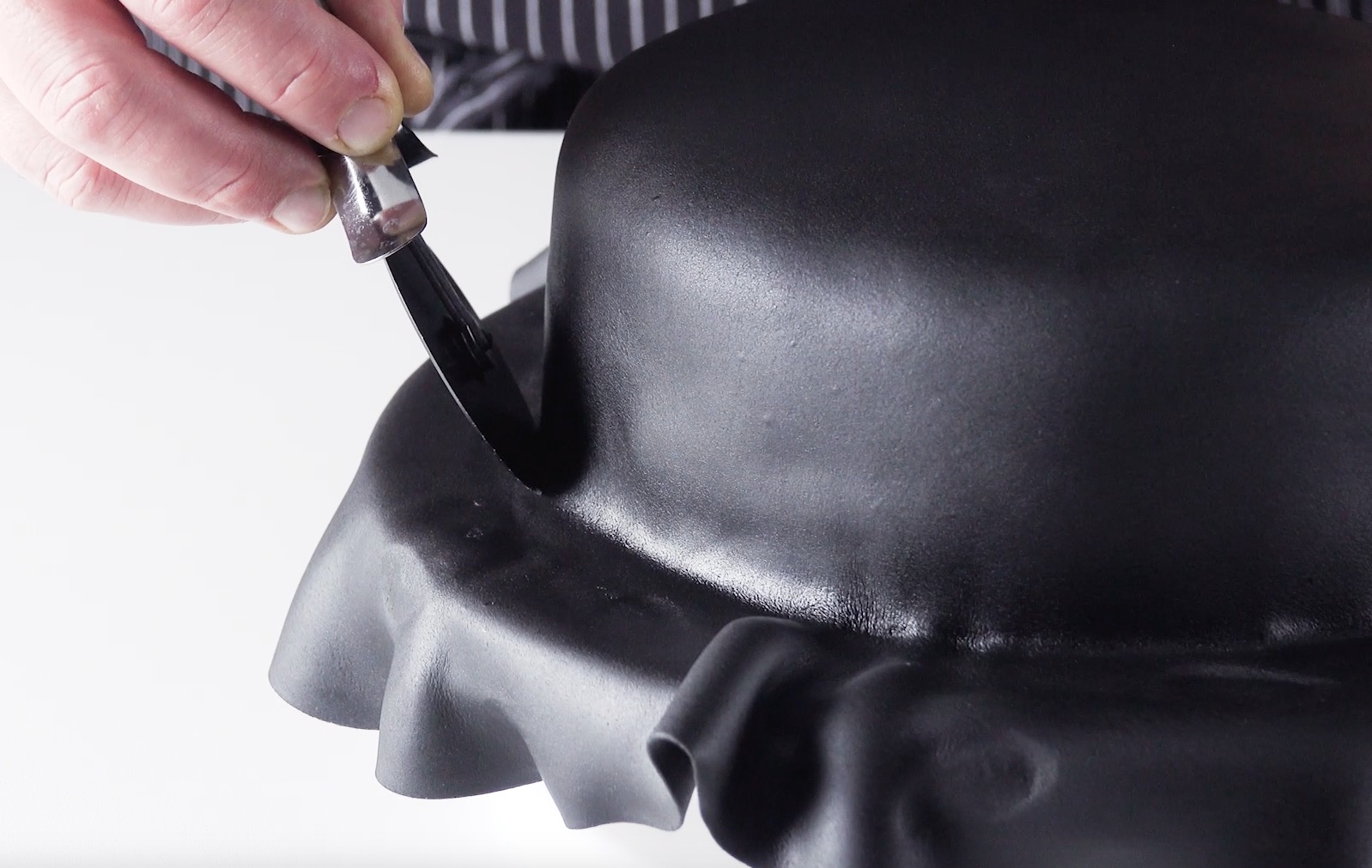 4.) Backe den Teig dann für 50 Minuten bei 175 °C im Umluft-Modus. Nachdem der Teig ausgekühlt ist, schneidest du ihn horizontal in 3 gleich dicke Platten.