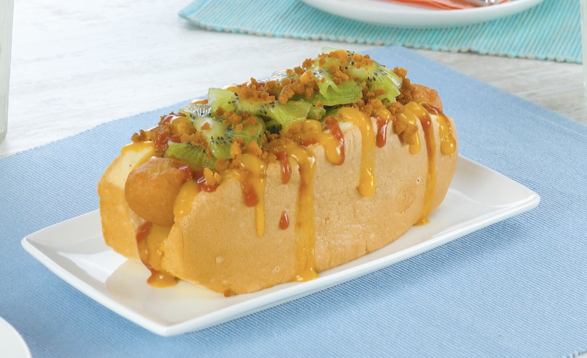 Du bist auf der Suche nach einem völlig verrückten Dessert-Rezept? Wie wäre es dann mit süßen Hotdogs? Statt Würstchen, Gurke und Senf gibt es heute gebackene Banane in luftigem Kuchenteig mit Kiwi und Fruchtsoße. Dieser Hotdog sieht täuschend echt aus, ist aber was für den süßen Zahn. Eine richtig tolle Idee für alle, die von diesem beliebten Fastfood nicht genug bekommen können. Solche süßen Hotdogs findest du übrigens nur bei Leckerschmecker und nicht bei Ikea!