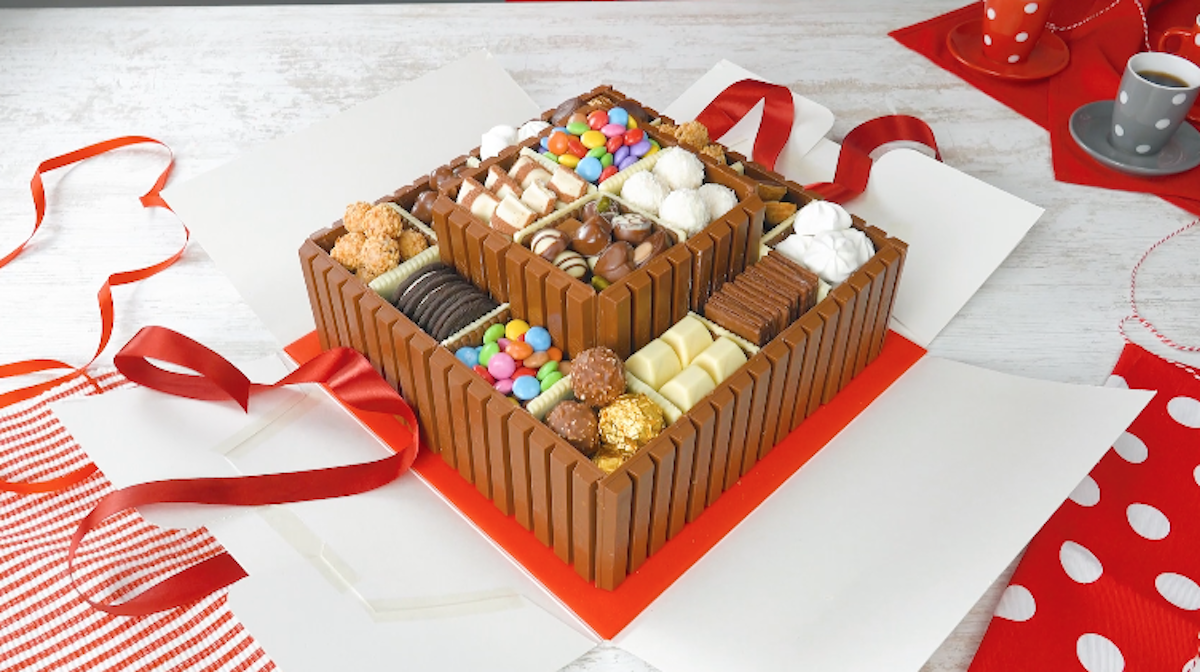 Du denkst, du hast Rezepte-mäßig schon alles gesehen? Bei folgendem Kuchen werden deine kühnsten Süßigkeiten-Träume wahr. Du kannst dich nicht entscheiden, ob du lieber Giotto, Raffaello oder KitKat magst? Kein Problem, wir packen einfach alles zusammen und zaubern daraus den besten Kuchen aller Zeiten. Ein saftiger Schokokuchen mit Frischkäsecreme, der dank KitKat-Riegeln und Keksen zu einer Box mit zahlreichen kleinen Kammern umfunktioniert wird. Ein Rezept, das direkt aus dem Himmel kommt.