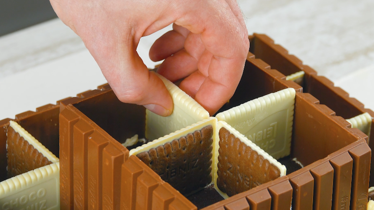 6. Setze dann die Kekse in den Kuchen, sodass kleine Kammern entstehen.