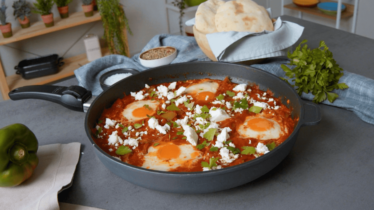 Lust auf eine kulinarische Reise? Sowohl in der israelischen als auch in der nordafrikanischen Küche ist folgendes Rezept ein Muss: Shakshuka. Dabei handelt es sich um gestockte Eier in würziger Tomatensauce mit Paprika. Dazu reicht man am besten Pita-Brot. Wir zeigen dir deshalb auch gleich, wie leicht man Pita-Brot selber machen kann. Und das Beste an dem Mahl: Es ist supergünstig. Man gibt hier pro Person weniger als 2 Euro aus.