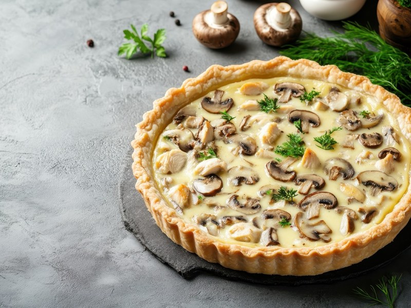 Backe diese Champignon-Hähnchen Quiche zum Dinner
