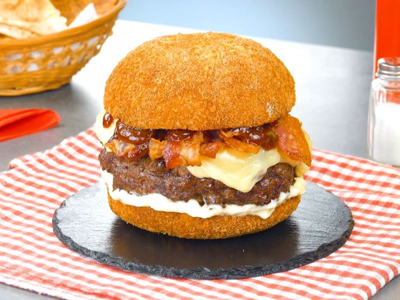 Hackfleisch Bombe mit Camembert, Spitzpaprika und Bacon