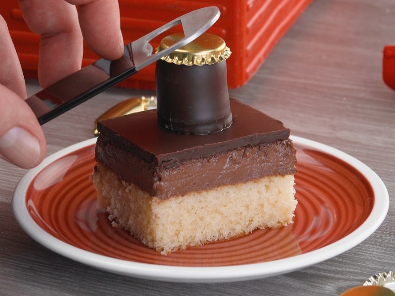 Schneller Kuchen gefüllt mit Karamellcreme und Marmelade
