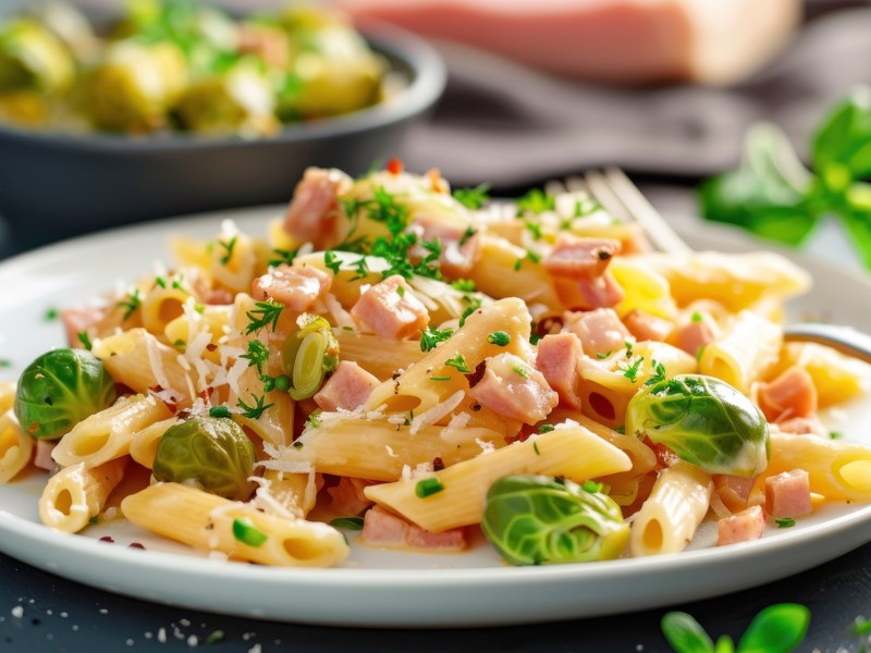 Diese schnelle Rosenkohl-Speck-Pasta macht glücklich