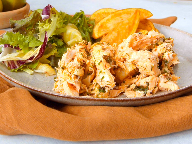 Gefülltes Brot mit Hähnchen, Kartoffeln und Spinat