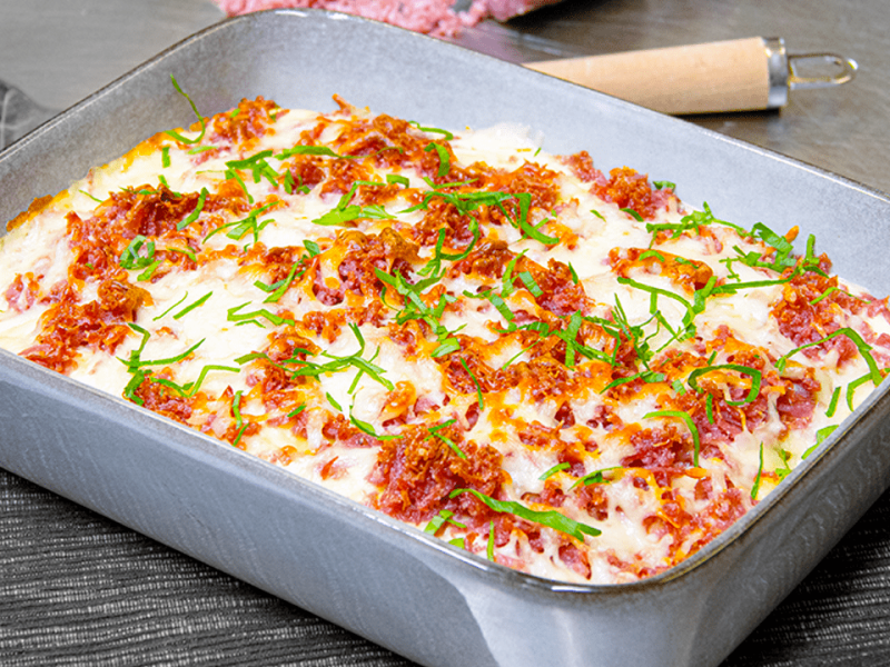 Herbstliche Börek-Pfanne mit Kürbis aus dem Ofen