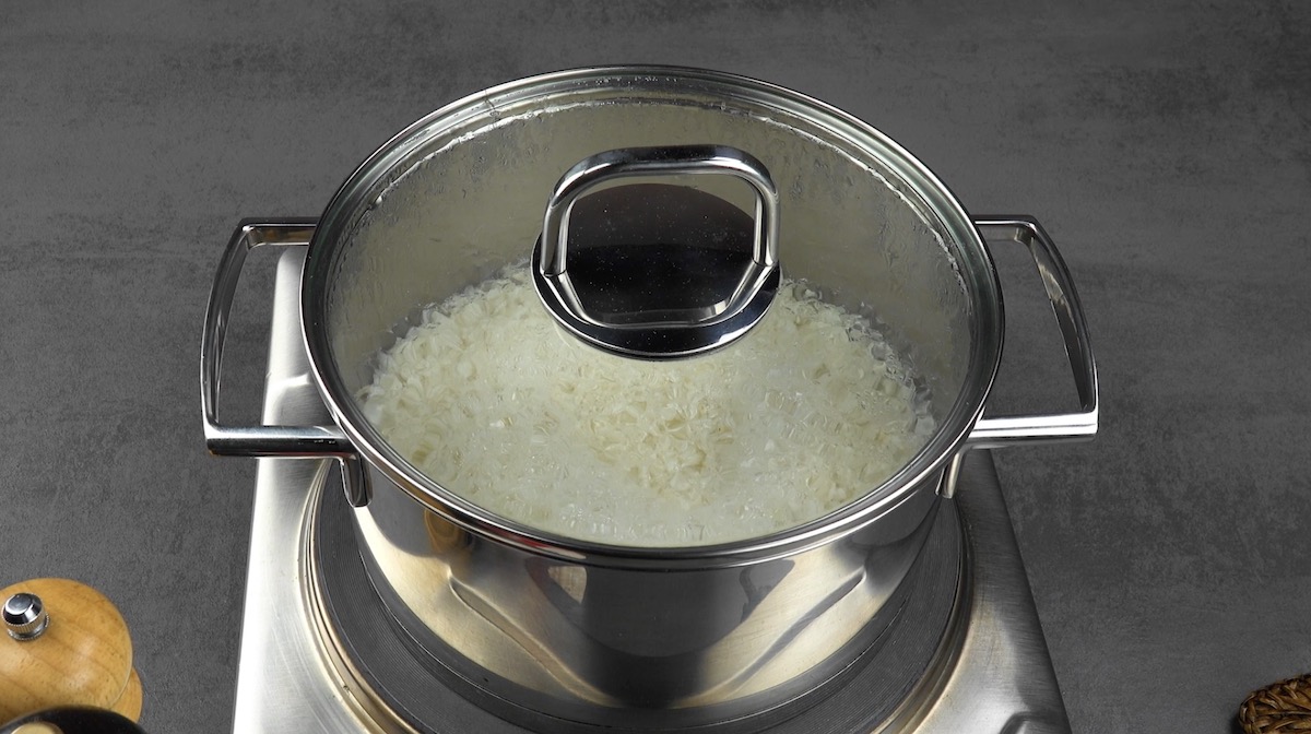 • Einen Topf mit dickem Boden. Ist der Boden zu dünn, brennt der Reis an, da sich die Hitze nicht gleichmäßig verteilen kann