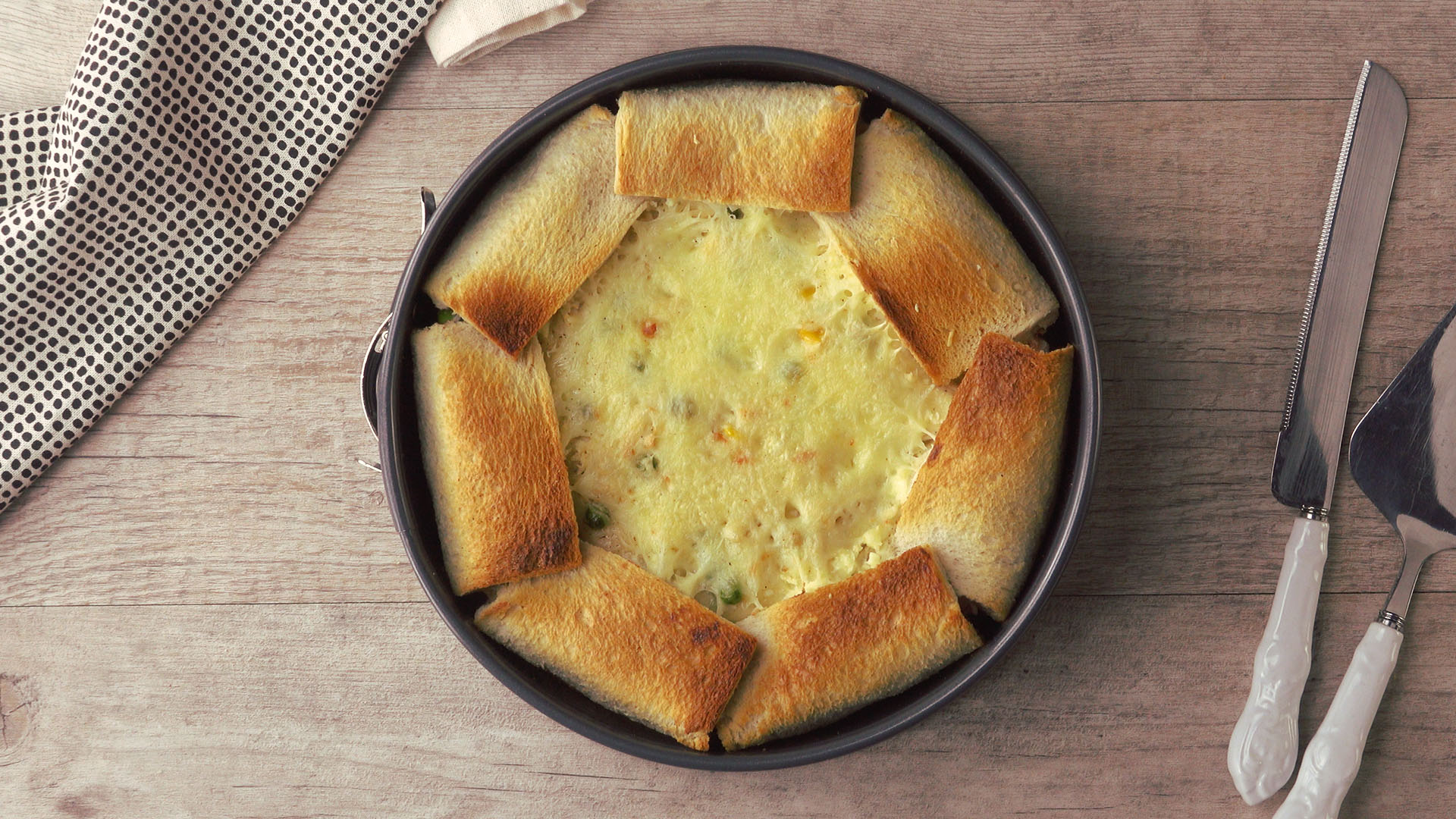 Aus den „Restdreiecken“ der herausgeschnittenen Toastdreiecke kannst du für die zweite Toastschicht zudem neue formen.