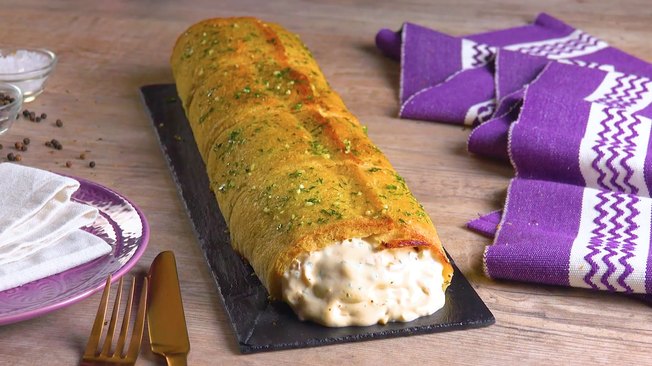 Für die einen mag es sinnlos und sonderbar erscheinen, aus einem in Scheiben geschnittenen Brot ein neues zusammenzusetzen, für andere hingegen ist das der Grundstein eines genialen Gaumenschmauses. Versuchen wir einfach, Gruppe eins umzustimmen. Diesem außen knusprigen und innen cremigen Brotröllchen zu widerstehen, wird nämlich schwer! Dafür brauchst du: