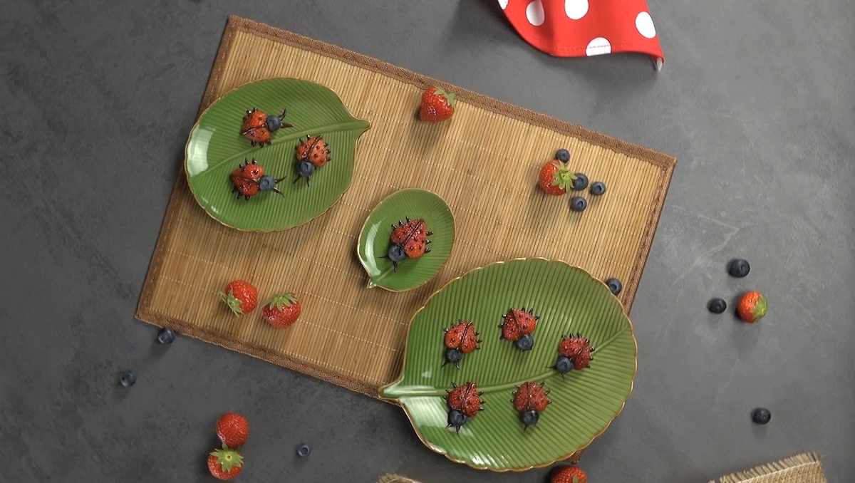 Verkleidet als Marienkäfer sehen Erdbeeren noch entzückender aus. Halbiere dafür die Früchte und klebe mithilfe von geschmolzener Schokolade je eine Blaubeere an das breite Ende der Erdbeerhälften. Verziere die Erdbeeren dann mit geschmolzener Schokolade so, dass sie aussehen wie niedliche Marienkäfer.