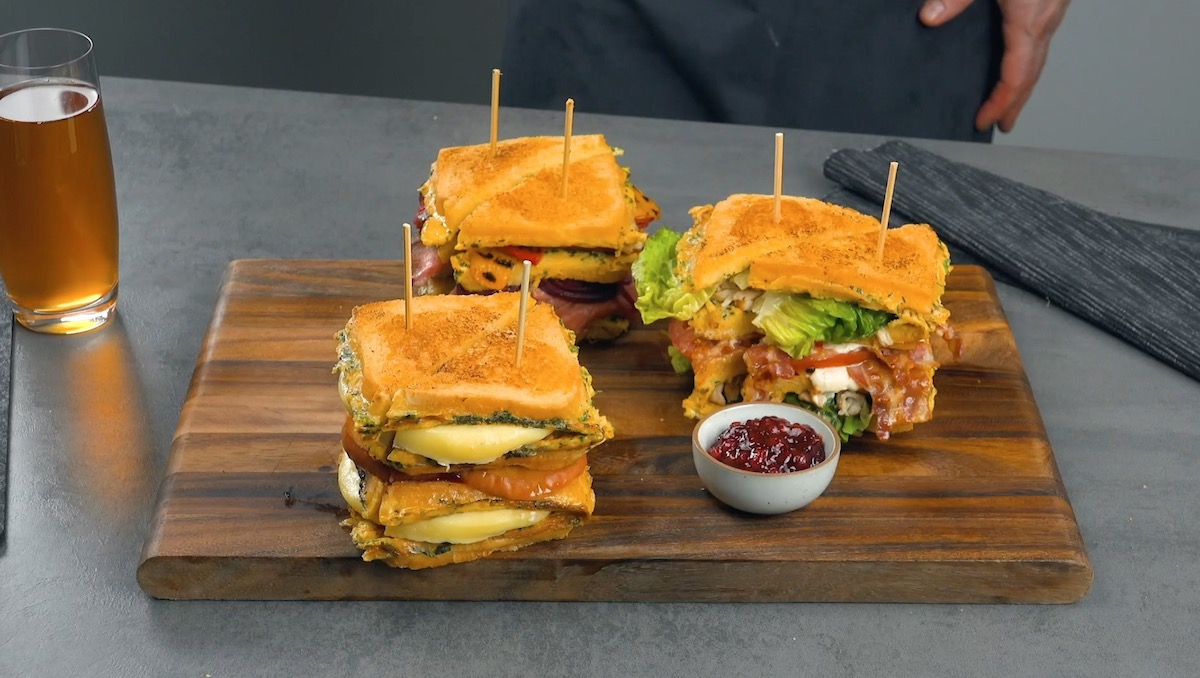 Wir zeigen dir, wie außergewöhnlich man Sandwiches im XXL-Format mithilfe eines Backblechs und von Eiern zubereitet. Wenn du das klassische Club-Sandwich präferierst, kein Problem, das ist mit dabei. Für alle Steak-Liebhaber gibt es ein Steak-Sandwich mit gegrillter Paprika. Und etwas Käsiges gibt es ebenfalls: Sandwich mit Camembert, angebratenen Apfelringen und Preiselbeeren.