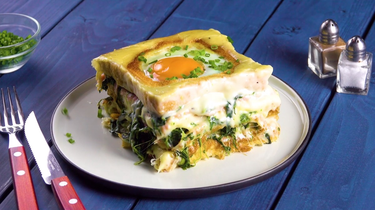 Wusstest du, dass Toastbrot und Omelett ein köstliches Duo ergeben? Fusioniere einfach Eier und Toastbrot in einer Pfanne zu einem Sandwich, bei dem dir das Wasser im Mund zusammenläuft.