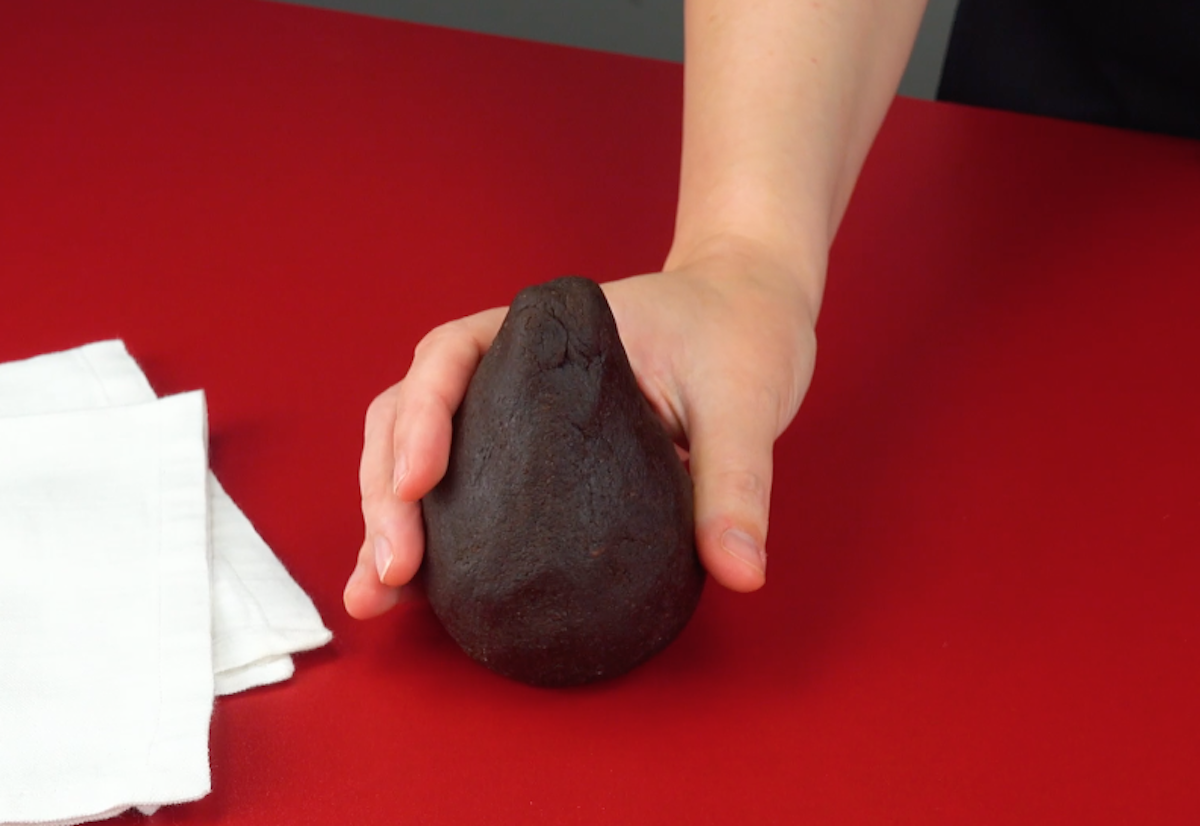 2.2) Forme die Masse per Hand zu einer ovalen Kugel und stelle diese aufrecht auf eine Arbeitsfläche.
