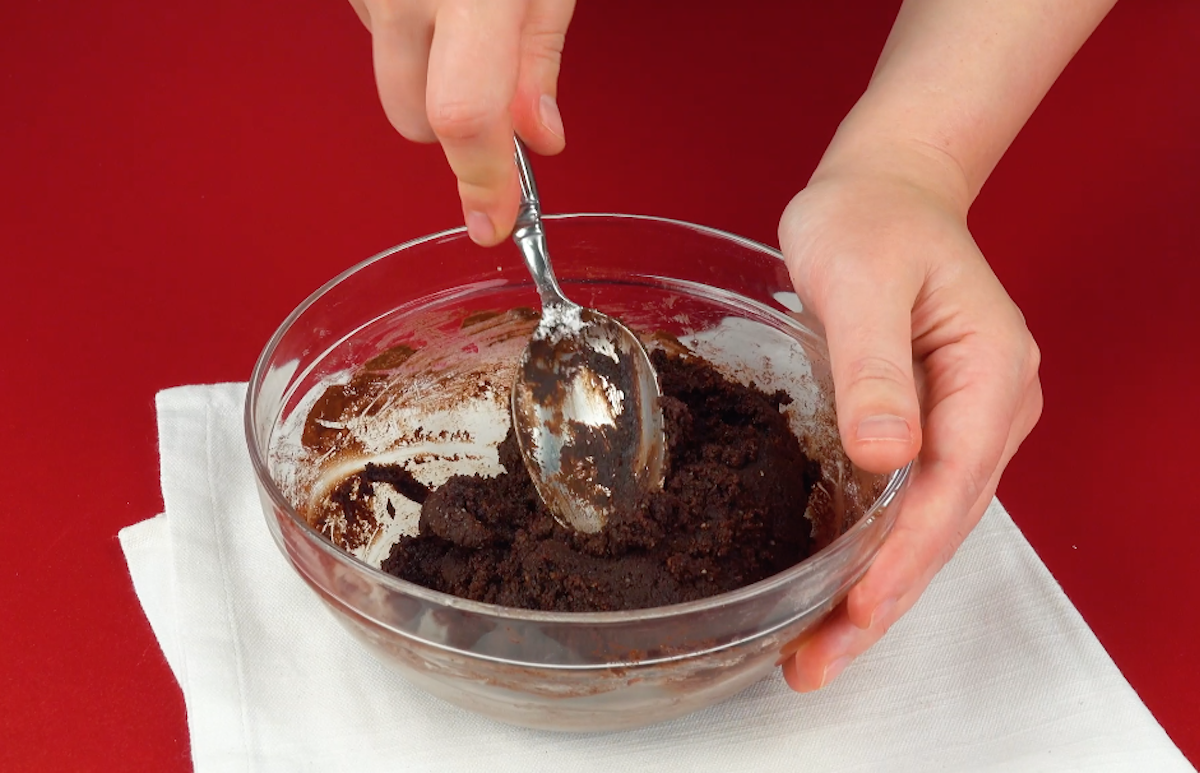 2.1) Vermenge gemahlene Mandeln mit Puderzucker, Kakaopulver und Wasser, bis eine geschmeidige und formbare Masse entsteht.