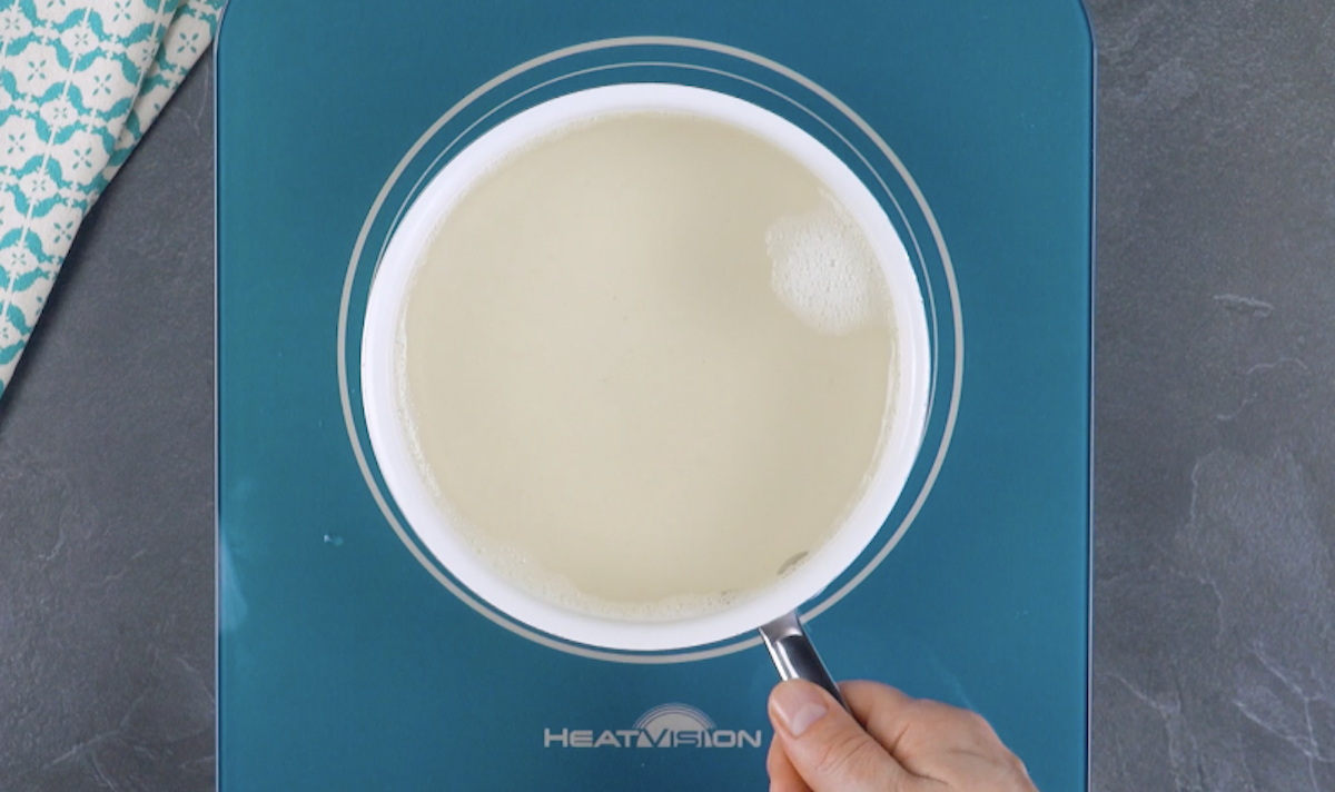 2. Kommen wir nun zur Geleefüllung. Verrühre die Pulvergelatine mit 10 EL Wasser und lass sie ca. 10 Minuten lang quellen. Erwärme das restliche Wasser mit Zitronensaft, Zucker, Zimt, Sternanis und Nelken auf ca. 60 °C und löse dann die gequollene Gelatine darin auf. Entferne die Gewürze und passiere die Flüssigkeit durch ein Tuch, am besten 2- bis 3-mal, damit sie schön klar wird. Lass alles auf ca. 25 °C abkühlen.